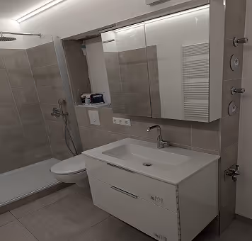 Wir bieten Ihnen ein breites Spektrum an Leistungen rund um Ihr Badezimmer und Ihre Wohnräume. Ob Verlegung von XXL-Fliesen, bodengleiche Duschen, Badumbau und Badsanierung oder barrierefreie Badezimmer, wir setzen Ihre Wünsche fachgerecht und mit viel Liebe zum Detail um. Mit Erfahrung, Präzision und hochwertigen Materialien schaffen wir Lösungen, die nicht nur funktional, sondern auch optisch überzeugen.